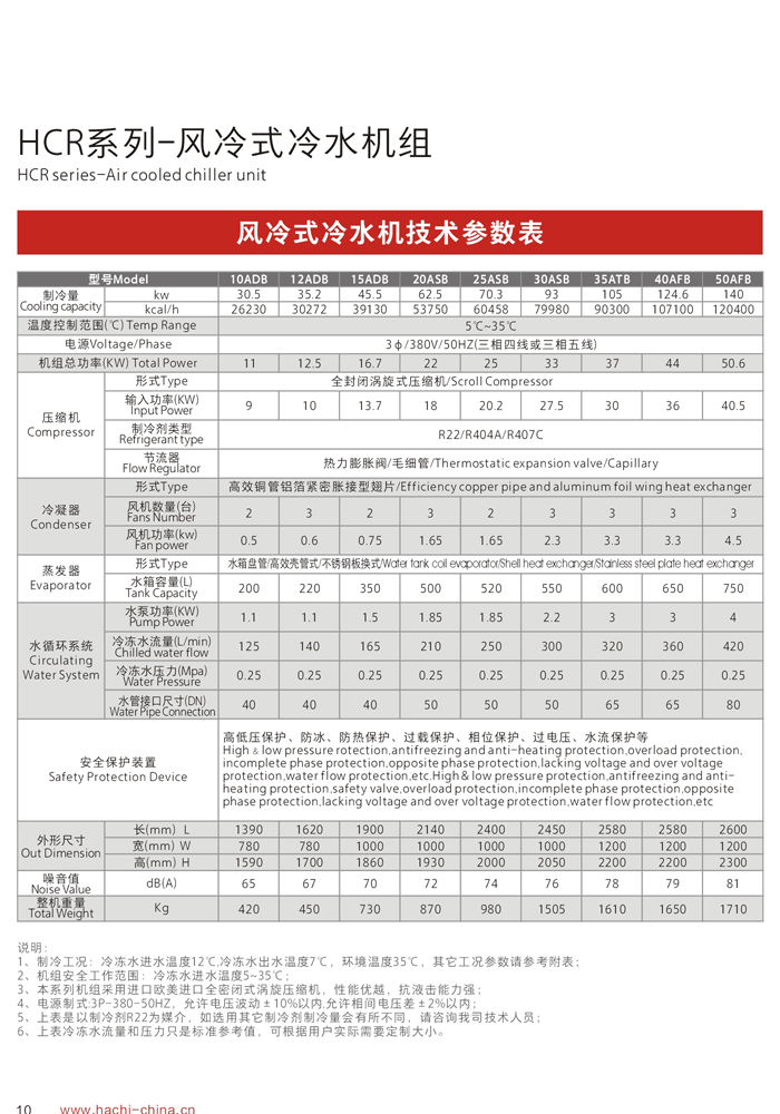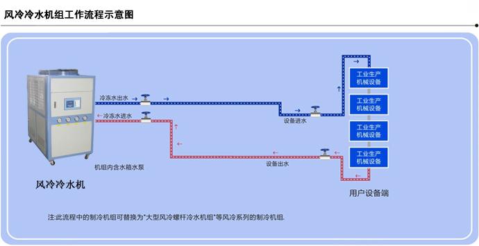 產(chǎn)品特點(diǎn)Features: 1、采用國際最先進(jìn)的渦旋式或活塞式壓縮機(jī),電器及制冷系統(tǒng)原器件全部為世界著名品牌; 2、冷卻水泵及管路系統(tǒng)全部采用不銹鋼材質(zhì),確保水質(zhì)更潔凈,使用壽命更長久、制冷效果更穩(wěn)定; 3、風(fēng)冷冷凝器全部采用進(jìn)口風(fēng)機(jī)及大風(fēng)量低噪音軸流設(shè)計,噪音更低、換熱效率更高; 4、風(fēng)冷系列無需配置冷卻水塔及冷卻水泵,安裝簡單,移動方便,適合生產(chǎn)場地比較緊缺的環(huán)境使用; 5、機(jī)組采用進(jìn)口高精度電子顯示器,內(nèi)置P.I.D 自動演算功能,啟動延時功能,控溫精度在±0.5℃范圍內(nèi),且控制溫度范圍在3℃~40℃之間; 6、為保證使用安全,機(jī)組內(nèi)置漏電保護(hù)器、相位保護(hù)、過載保護(hù)、電流保護(hù);系統(tǒng)安裝了高、低壓保護(hù)傳感器,為防止缺水或循環(huán)水系統(tǒng)內(nèi)部結(jié)冰,機(jī)組安裝了流量開關(guān)和低液位保護(hù)裝置。